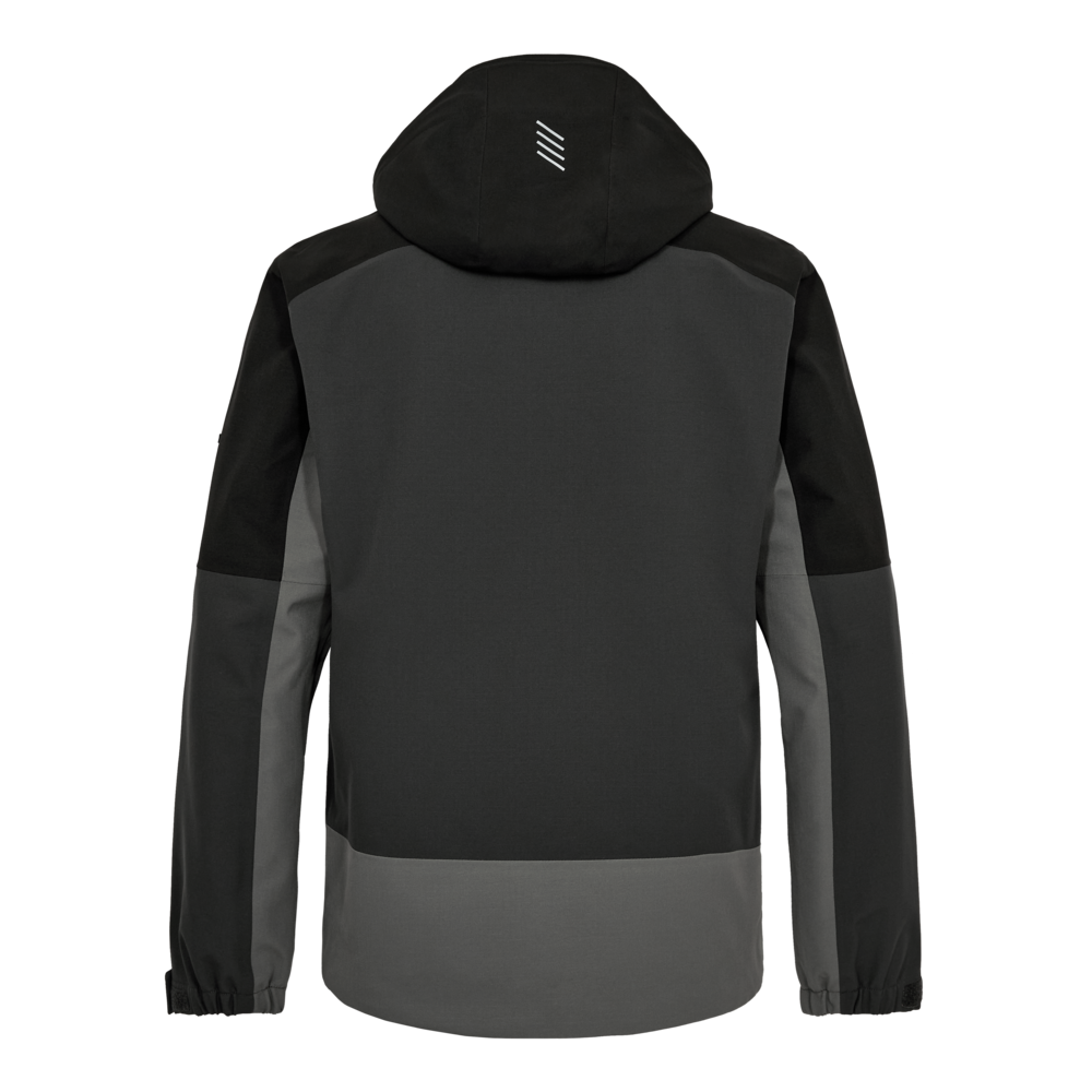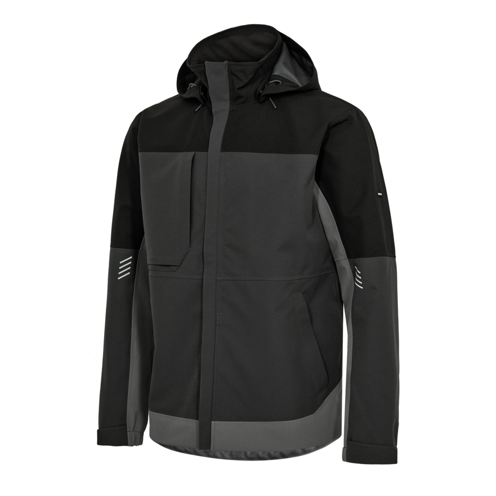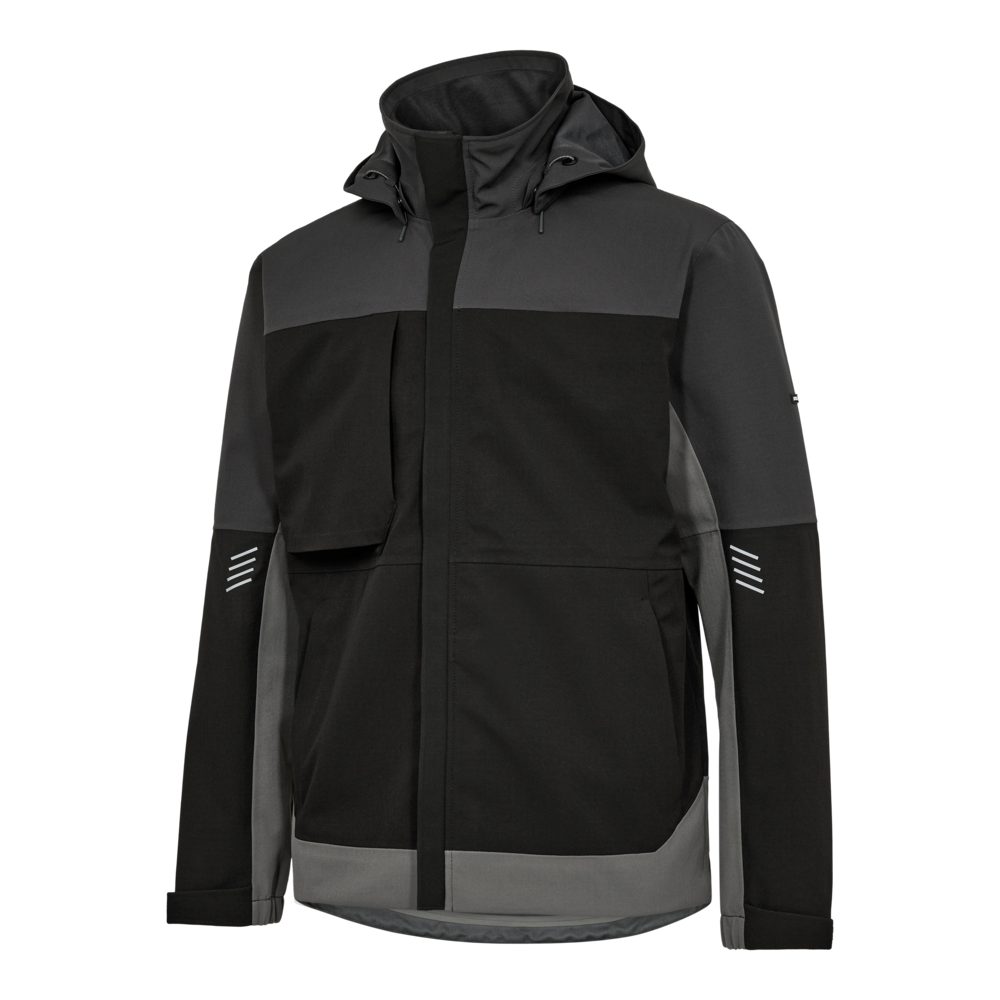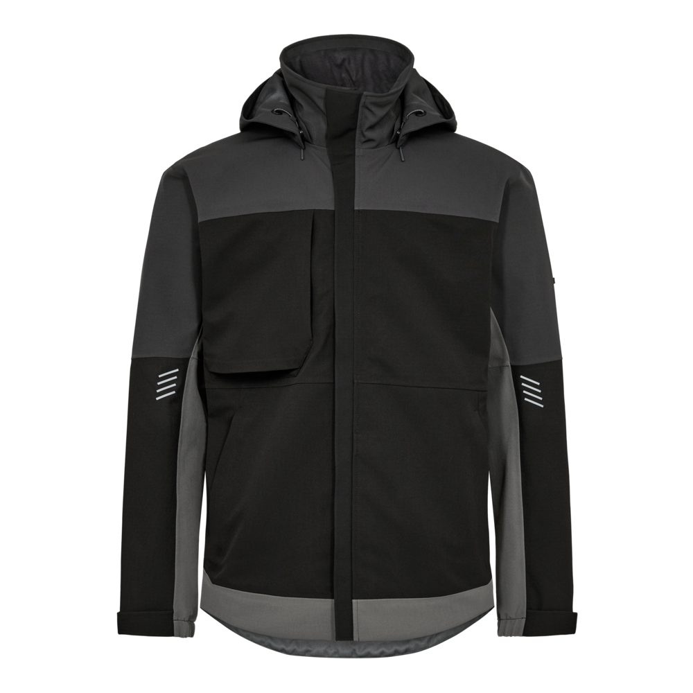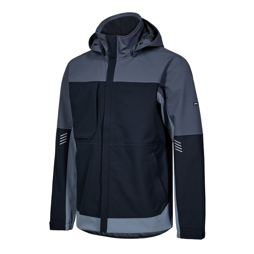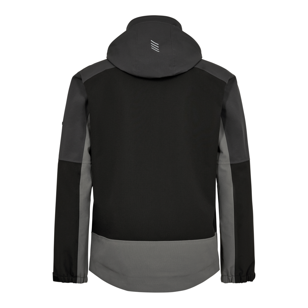 Denna skaljacka är designad med fokus på funktionalitet och komfort. Den är tillverkad i Ripstop med mekanisk stretch för ökad rörelsefrihet. Jackan är både vatten- och vindtät och har tejpade sömmar för extra skydd. För ökad komfort har jackan en mjuk och vindskyddande innerkrage. Den praktiska och avtagbara huvan gör jackan mycket användbar i många olika arbetssituationer. Jackan har dessutom dold dragkedja fram med en smal knappslå som skyddar mot repor. De många praktiska fickorna ger säker förvaring, inklusive en rymlig bröstficka och två sidofickor med dragkedja samt en praktisk innerficka med kardborrestängning. En D-ring i höger sidoficka gör det lätt att fästa till exempel ID-kort. För att säkerställa en perfekt passform har jackan elastik och kardborrejustering längst ner vid ärmarna, så den kan anpassas individuellt. Reflextryck på ärmarna och ryggen ökar synligheten i mörka miljöer, medan det förlängda bakstycket ger extra skydd för ländryggen. Det finns också gott om plats för företagsprofilering.